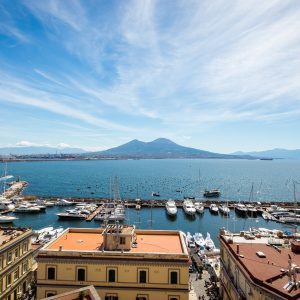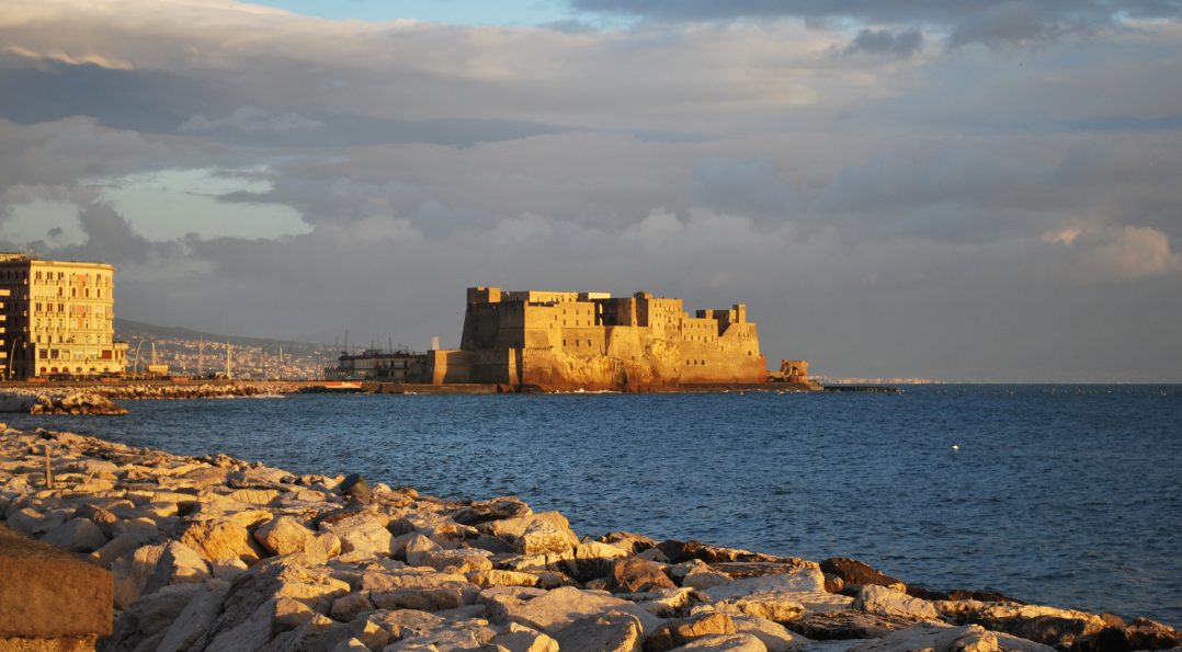 Imaginez une promenade sur le front de mer, le soleil glissant derrière le Vésuve et les vagues murmurant contre les rochers. Devant vous se dresse une ancienne forteresse, dorée par le soleil couchant : le Castel dell'Ovole plus ancien château de la ville, surplombant la Golfe de Naples. Sa silhouette domine la petite île de Mégarideune bande de rochers qui a vu naître des légendes et accueilli des peuples différents, des Grecs aux Romains, puis aux Normands, aux Souabes et aux Angevins.